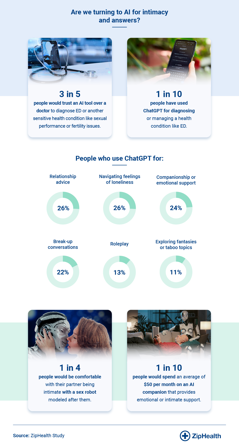 - 1 in 10 people have used ChatGPT for diagnosing or managing a health condition like ED.