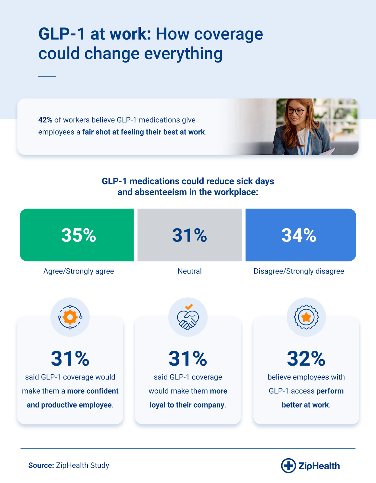 - 31% of workers say an employer-covered GLP-1 treatment would boost their confidence at work and increase their company loyalty.