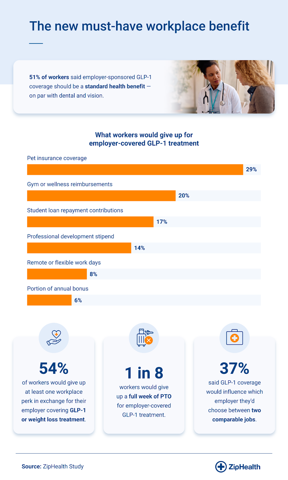 Employees are rethinking benefits, with many prioritizing GLP-1 coverage over perks, pay, and even time off.
