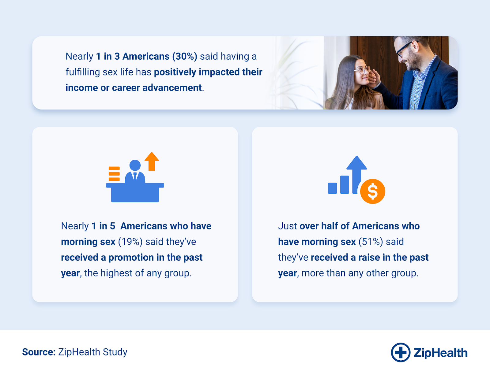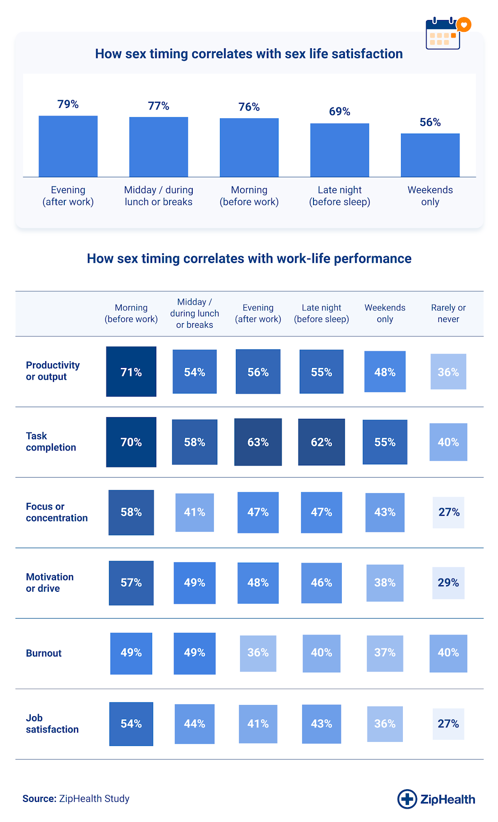 Work-life balance isn't just about where you spend your time; it's also about how you start your day. This ZipHealth study found that morning sex may enhance focus, motivation, and confidence, while also reducing stress and improving emotional stability.