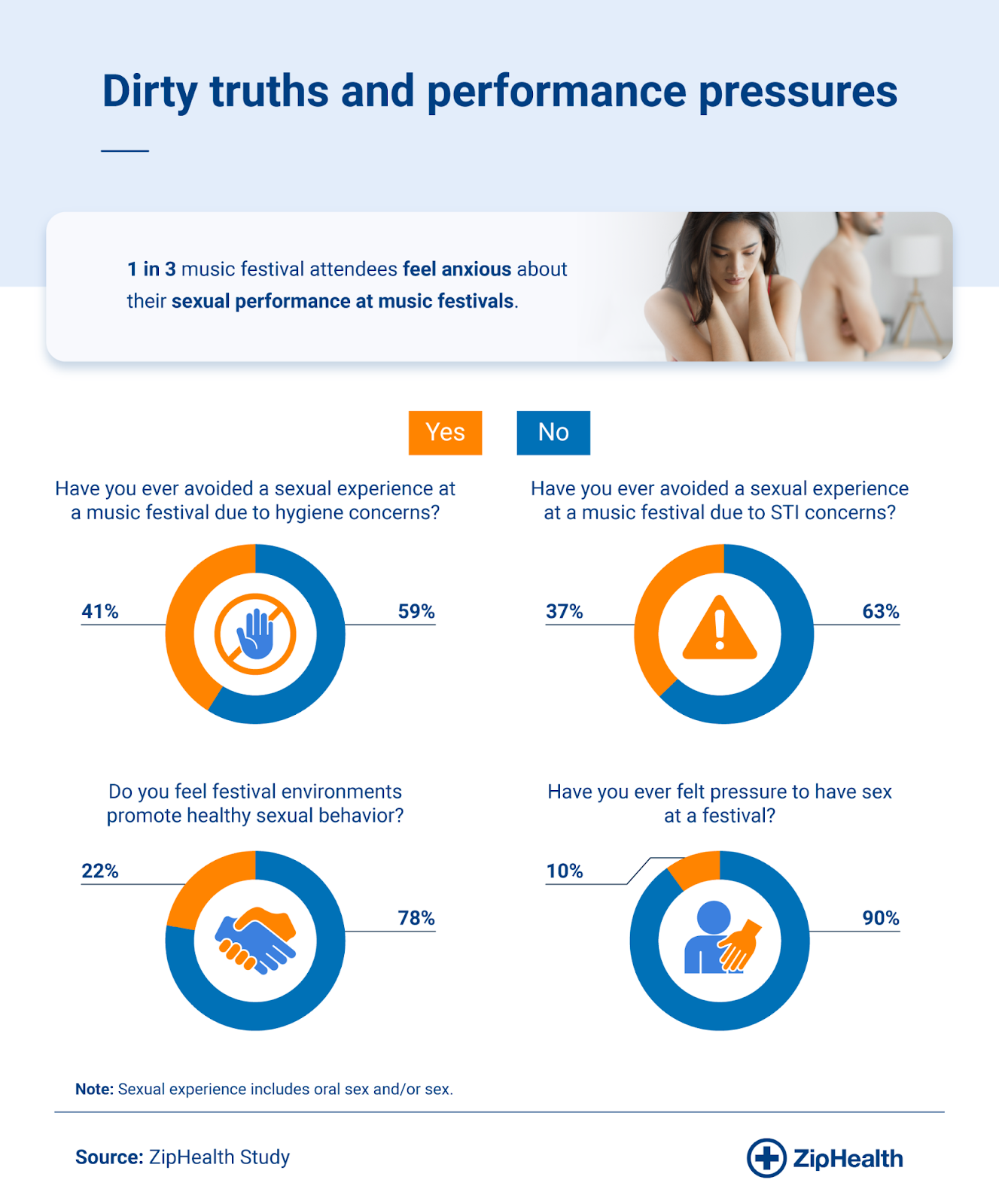 - 1 in 3 music festival attendees feel anxious about their sexual performance at music festivals.